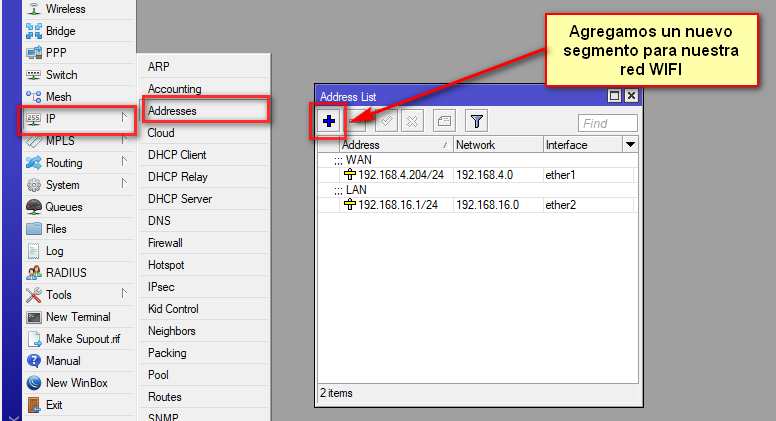 En este ejemplo vamos a configurar una LAN exclusiva para nuestra para nuestro WIFI. Es decir tendremos 2 redes LAN una cableada y una wifi, en otro manual integraremos el WLAN a una LAN existente.