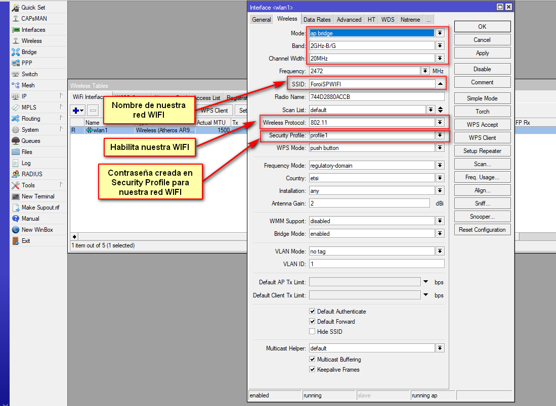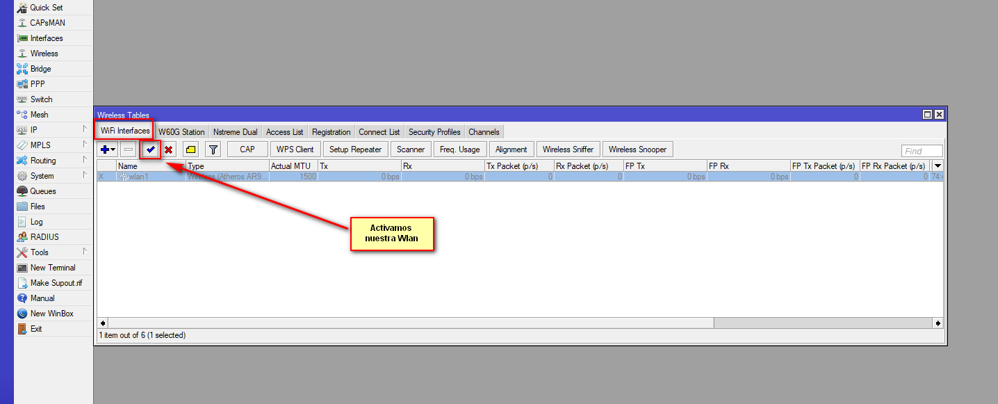 Nota: Para poder configurar la interface wifi en tu RB, es necesario haber configurado la interface WAN(salida a internet) y LAN
