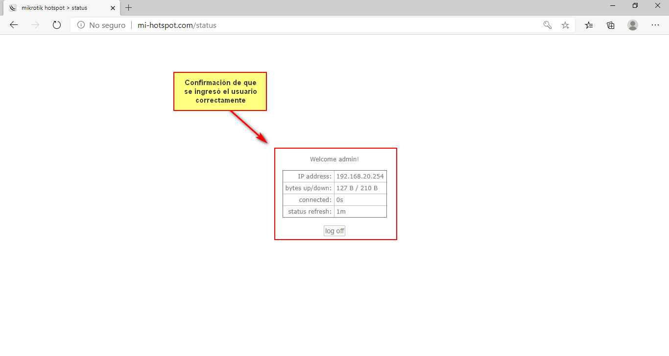 3 Una vez que se creo el servidor en nuestro navegador ingresamos a la dirección DNS que le asignamos para comprobar que esté funcionando, aquí es donde los usuarios deberán hacer login para poder tener acceso a Internet.
