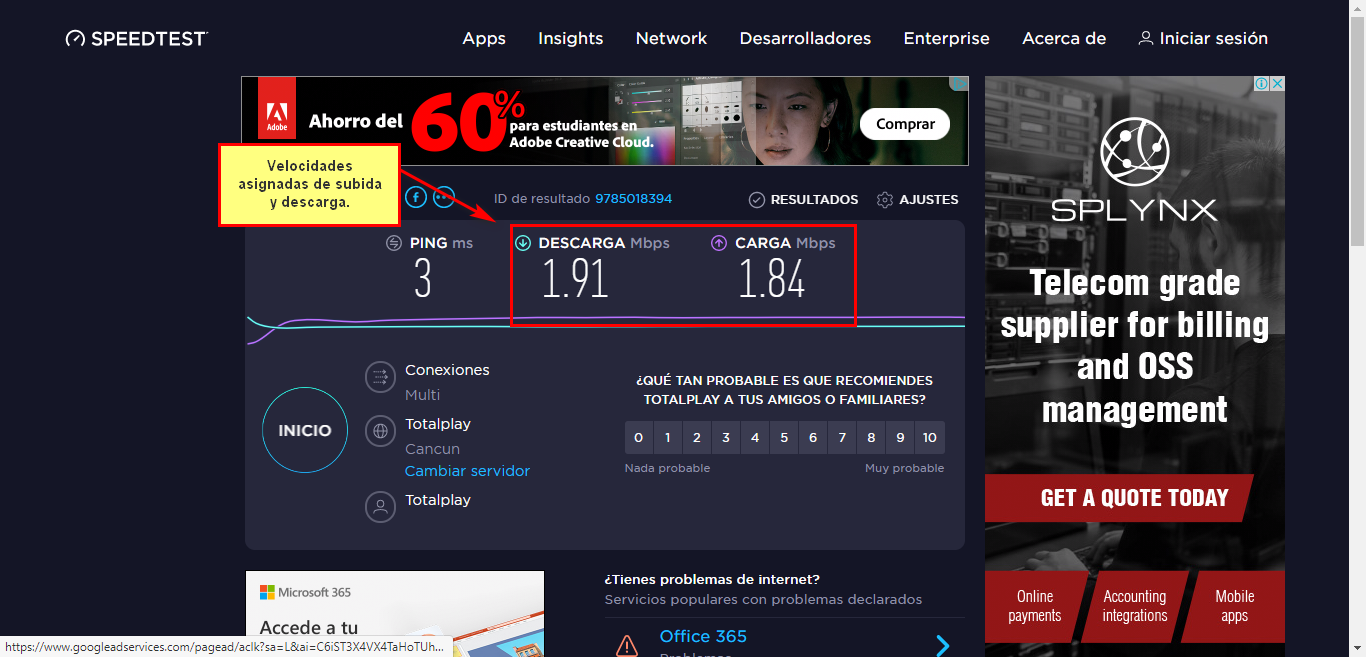 Si realizamos una prueba de velocidad podemos comprobar que la velocidad fue tomada del profile que asignamos.