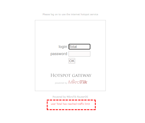 Nuevamente ingresaremos con el usuario que acabamos de crear y verificamos que pueda ingresar, en la parte de estatus no aparecerá el consumo máximo que tiene para consumir, pero en el Rb podemos encontrar en user sus consumos.
