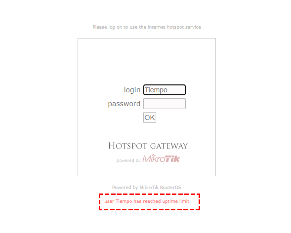 Una vez que pase este tiempo al intentar ingresar otra vez nos saldrá un mensaje que indica que a alcanzado el tiempo maximo de conexion.