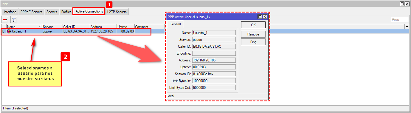 - Remote Adress: IP que se le asignara al usuario.