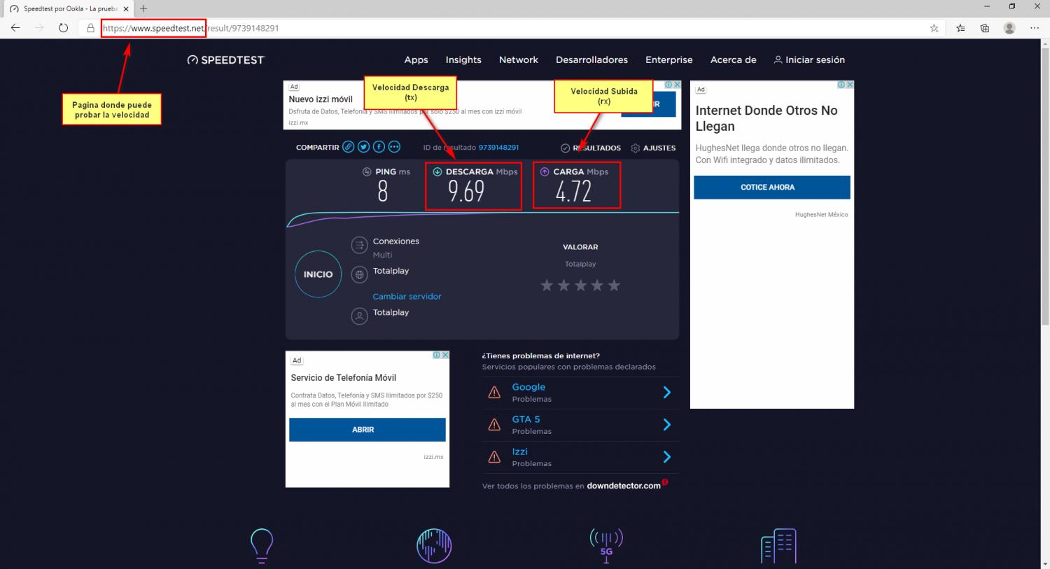 Una vez verificado esto podemos probar la velocidad desde el usuario final.