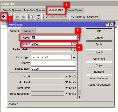 4-En parent seleccionamos UP que es el queue que creamos en el paso 3.2