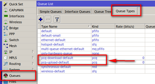 Antes de agregar los clientes, recordemos que vamos a hacer uso del PCQ queue type default de Mikrotik,