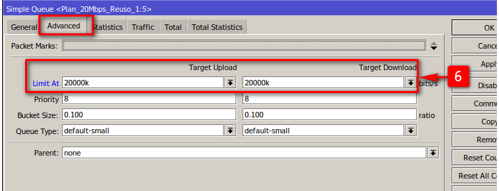 Parent: Plan_20Mbps_Reuso_1:5 (este queue se creó en el paso anterior)