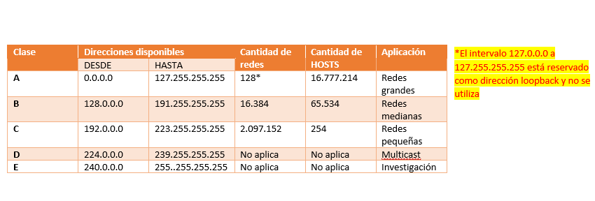 Existen 5 tipos de clases de IP, más ciertas direcciones especiales: