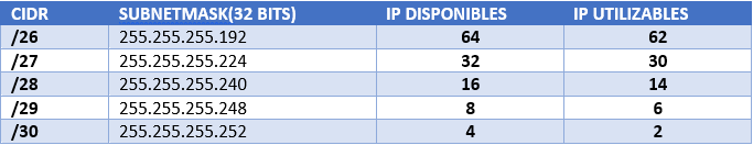 - Clase C: 192.168.0.0 a 192.168.255.255 (24 bits red, 8 bits hosts)