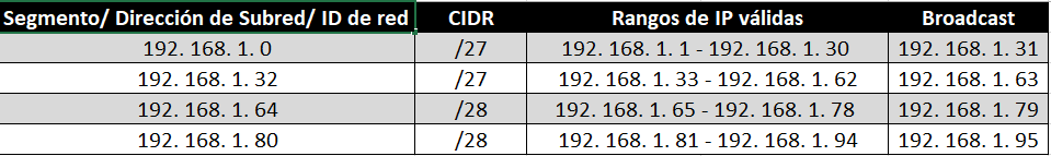 VLSM es una técnica que permite dividir subredes en redes más pequeñas pero la regla que hay que tener en consideración siempre que se utilice VLSM es que solamente se puede aplicar esta técnica a las direcciones de redes/subredes que no están siendo utilizadas por ningún host, VLSM permite crear subredes más pequeñas que se ajusten a las necesidades reales de la red (los routers que utilizan protocolos de enrutamiento sin clase como RIPV2 y OSPF pueden trabajar con un esquema de direccionamiento IP que contenga diferentes tamaños de mascara, no así los protocolos de enrutamiento con clase RIPV1 que solo pueden trabajar con un solo esquema de direcciones IP, es decir una misma mascara para todas las sub redes dentro de la RED-LAN) y por ultimo tenemos el CIDR(Resumen de Rutas) que es la simplificación de varias direcciones de redes o subredes en una sola dirección IP Patrón que cubra todo ese esquema de direccionamiento IP.