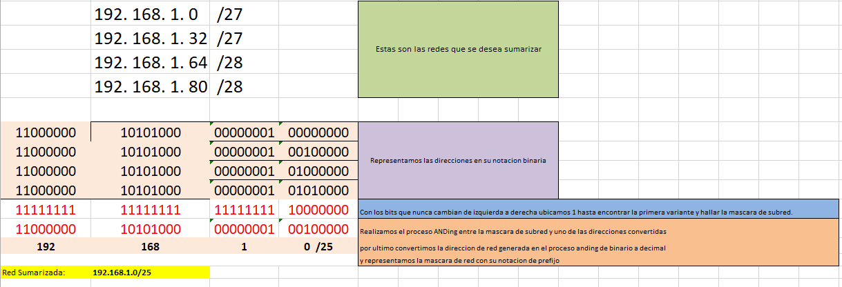 - el número de rutas a sumarizar debe ser consecutivo y tener un número igual a esa potencia de 2.