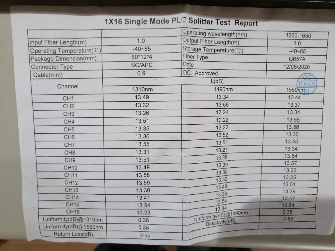 Tambien aqui les dejo un ejemplo de un splitter de segundo nivel 1 x 16 SC/APC y su informacion en cuanto a su perdida en DB