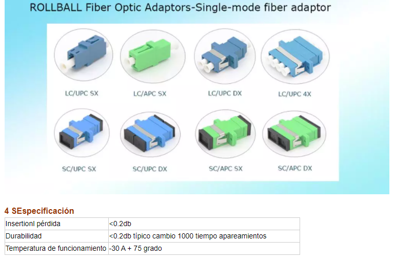 Aqui podemos ver ejemplos de patch cord de fibra optica y tambien al igual que sus respectivas perdidas en DB