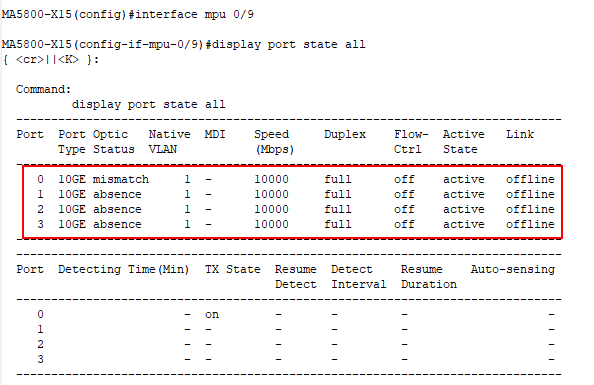 MA5800-X15 (config-if-mpu-0/9)# display port state all