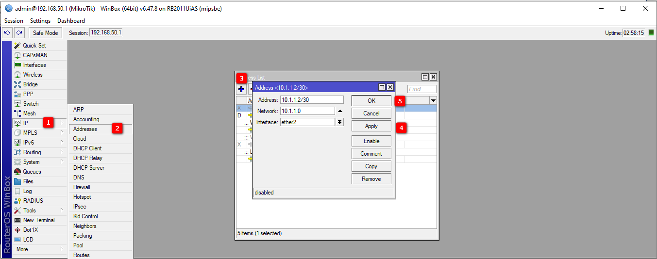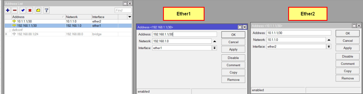 1Nos dirigimos al Mikrotik donde vamos a establecer nuestras direcciones.