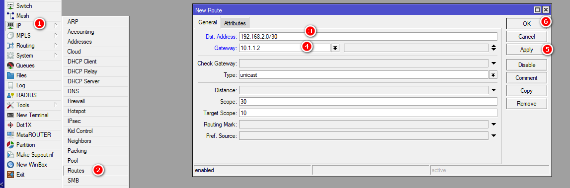 /ip route add dst-address=192.168.2.0/30 gateway=10.1.1.2