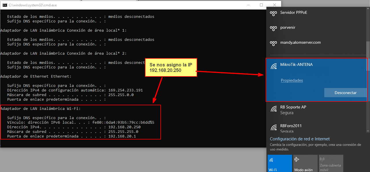 Esta configuración aplica en casos donde se requiere colocar una antena Mikrotik como access point para que los dispositivos que se conecten se le asigne una IP por medio del servidor DHCP y todos los dispositivos que se conecten a la antena se les asigne una dirección IP a través del servidor.
