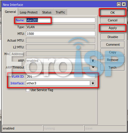 Y agregamos los siguientes datos para agregar la VLAN 201