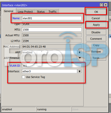 Y agregamos los siguientes datos para agregar la VLAN 301