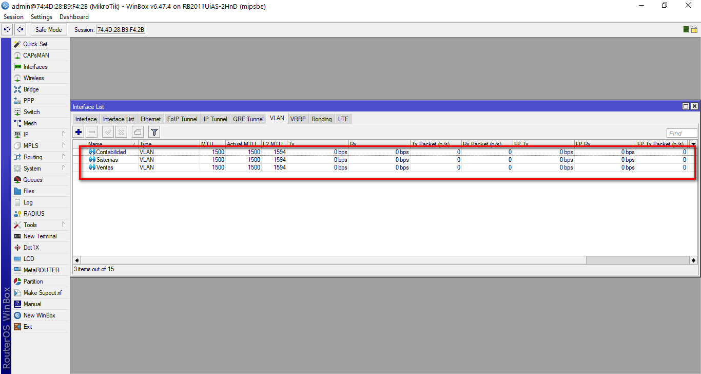 Repetiremos estos pasos con las demás Vlans, al terminar de crearlas tendremos una ventana con estas características