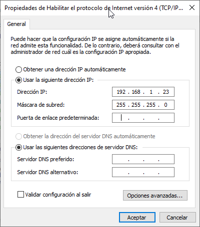 Configurar IP estática en Windows
