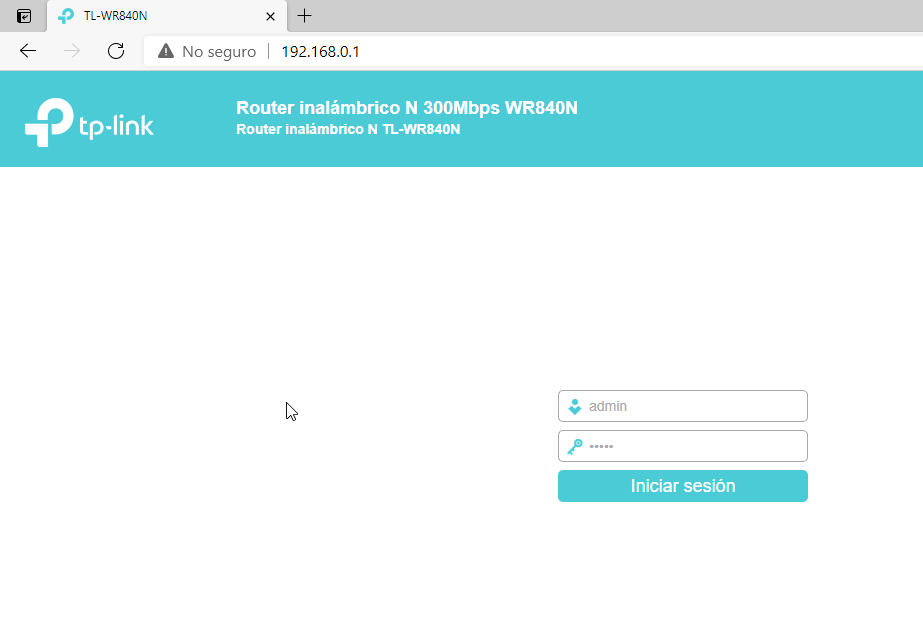 En el navegador entramos a la dirección IP predeterminada del equipo TP-LINK que es 192.168.0.1. Iniciamos sesión con las credenciales por defecto que son usuario: ”admin” y contraseña: “admin”.