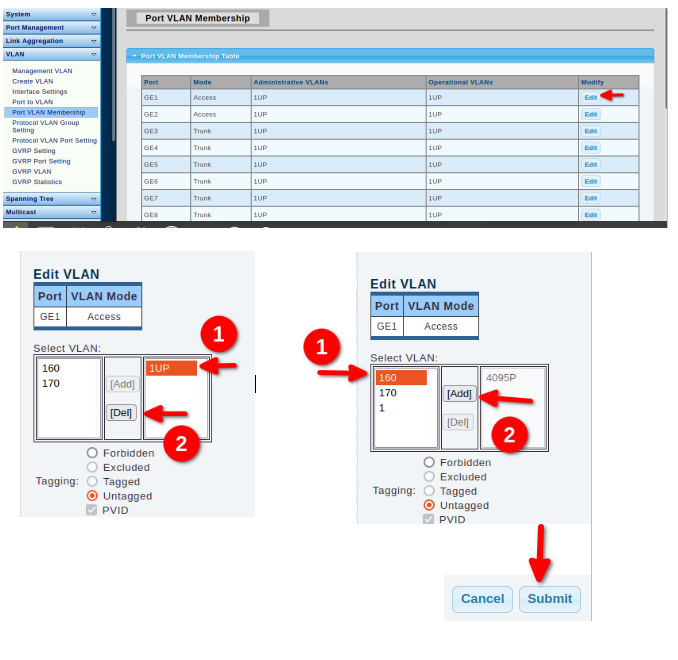 - Puerto 1 vlan160