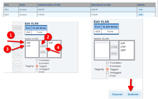 Repetimos esto con las otras dos vlan's la 160 y 170