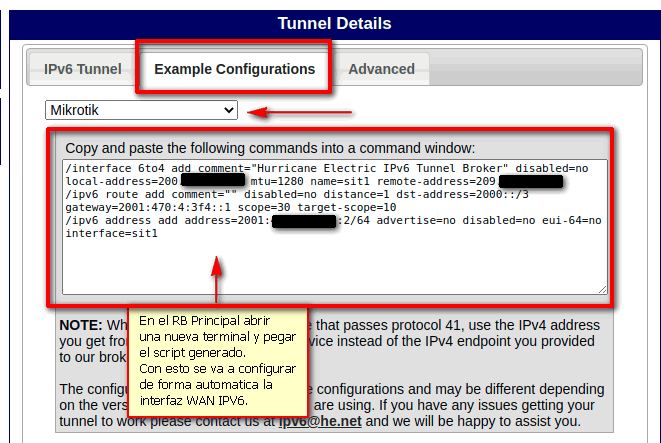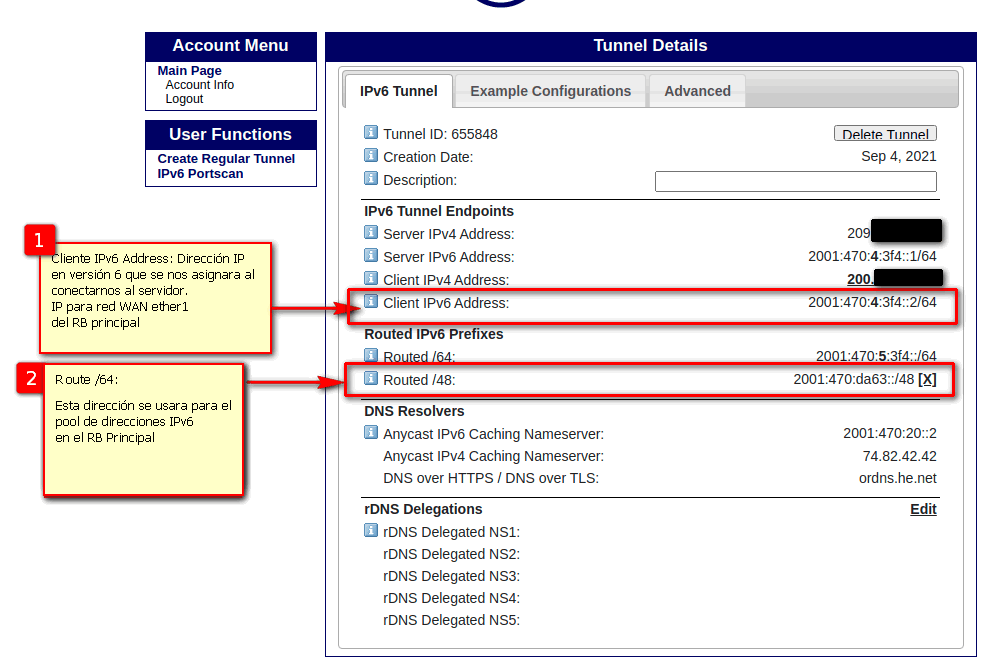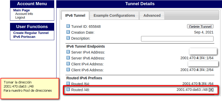 Una vez creada la cuenta y con los datos de ipv6 otorgados procedemos a la configuración.