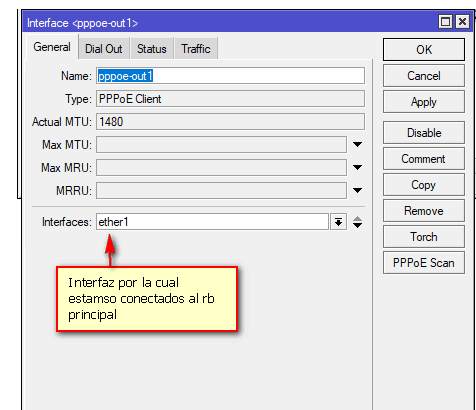 Interface: Seleccionamos la conexión pppoe realizada anteriormente