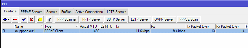 Ir en PPP->Interface->Agregar nuevo: PPPoE Cliente