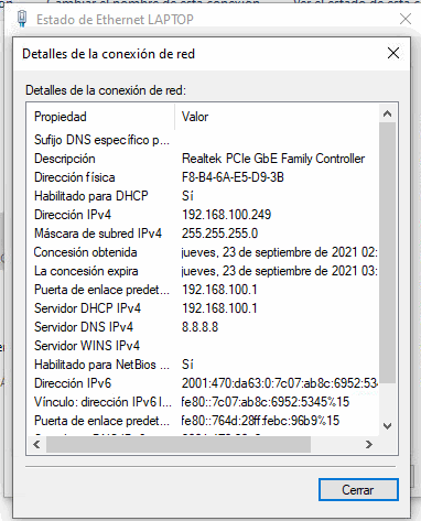 Conectamos un equipo al ether2 (lan) y con esto ya deberíamos tener una ip versión ipv6 e