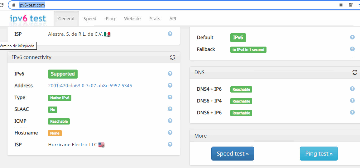Ingresamos para realizar un https://ipv6-test.com/