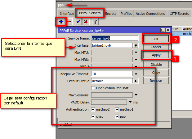 Ir a PPP->PPPoE Servers.