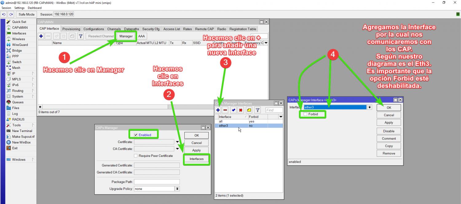 CAPsMAN es el acrónimo de Controlled Access Point system Manager. Administrador de sistema de puntos de acceso controlados.