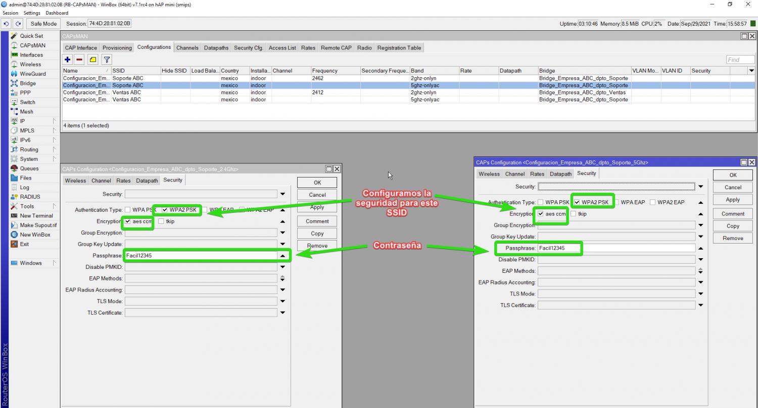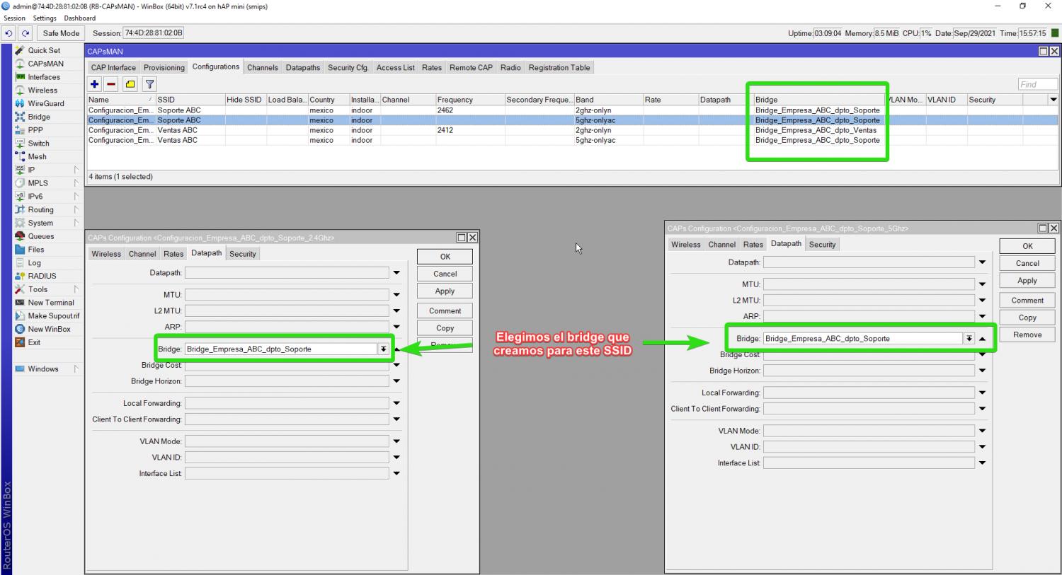 Una vez que pase ese tiempo CAPsMAN enviará la configuración al CAP para que este genere los SSID que configuramos anteriormente.