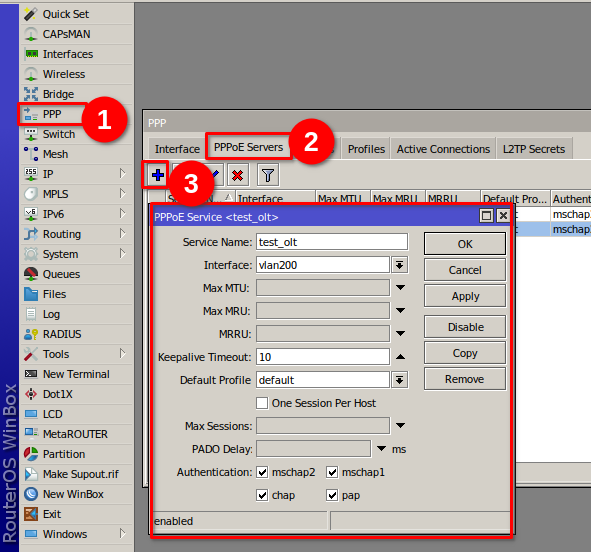 Creamos un PPOE Server en la vlan 200