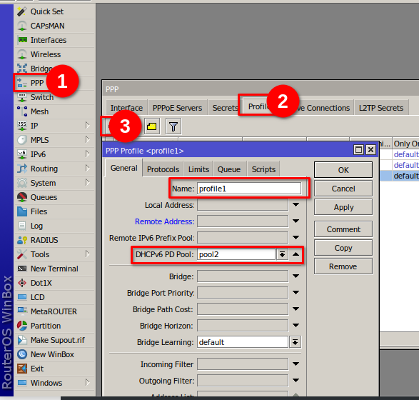 También creamos un profile, es importante que en DHCPV6 PD, escojamos el nombre del pool que creamos el el paso anterior.
