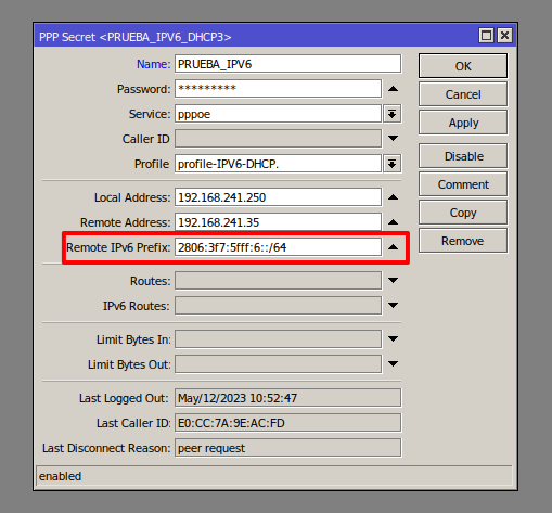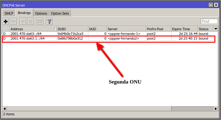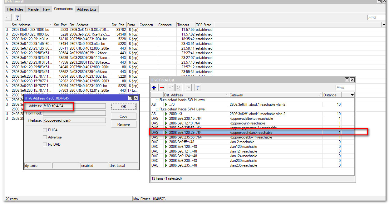 Esta configuración PPPoE levanta un server DHCPV6, el cual reparte prefijos, puedes ver los prefijos asignados en ipv6 > DHCP Server > Bindings