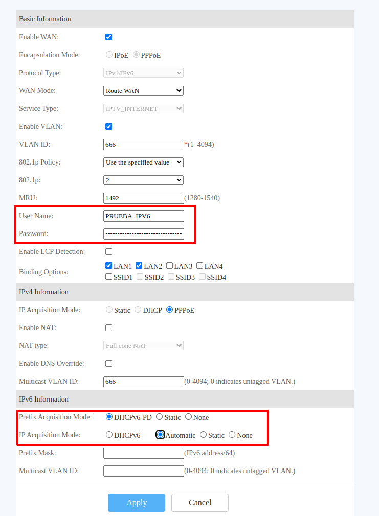 Después de guardar, ahora todos los equipo que se conecten a la onu podrán navegar por ipv4 e ipv6, ya que la onu repartirá ipv4 y ipv6.