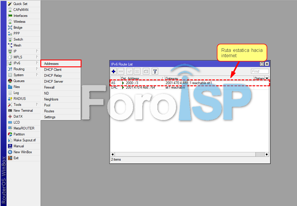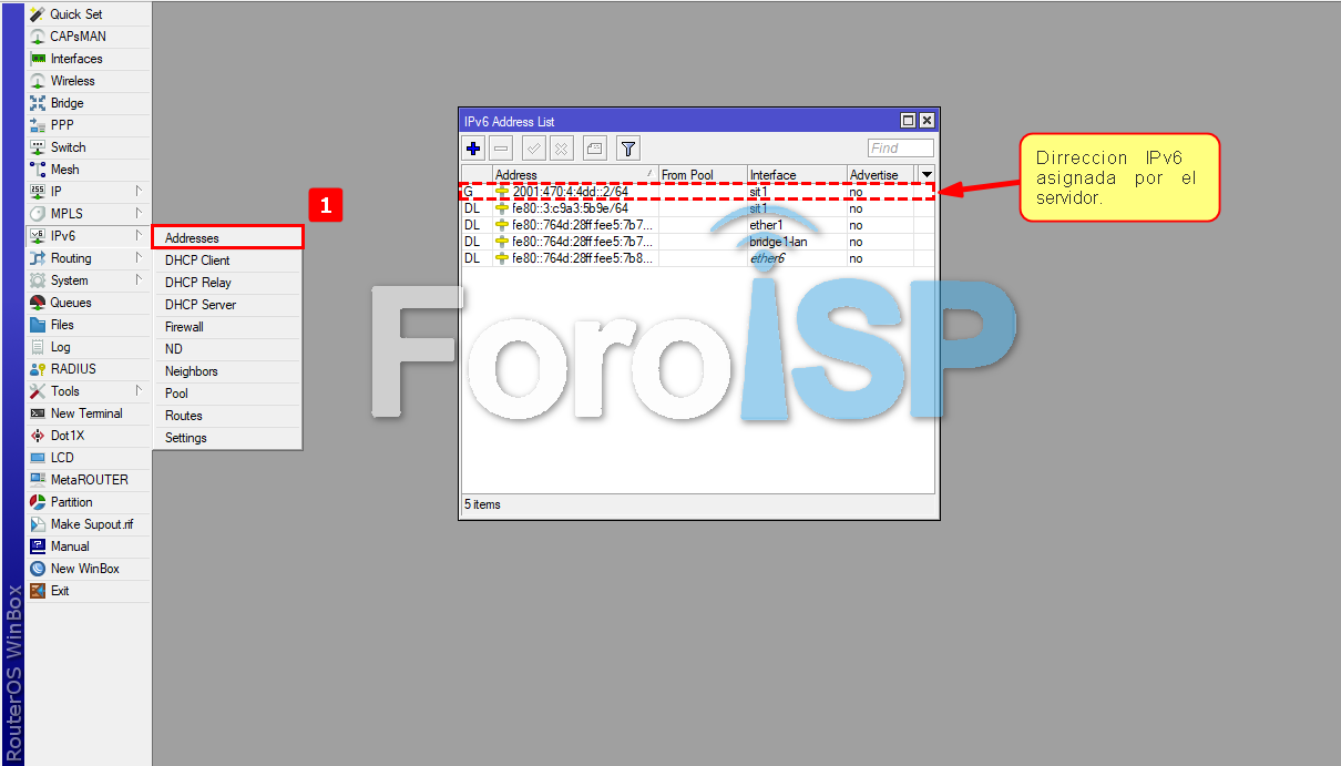Es necesario tener un POOL de IPV6, para este ejemplo usamos un tunnel broker de Hurricane Electric, solo es necesario tener IP Pública en tu RB Mikrotik. Aquí hay un manual para registrarse y obtener un pool de ipv6 a atraves de testa plataforma http://foroisp.com/threads/1652-Conf...highlight=ipv6.