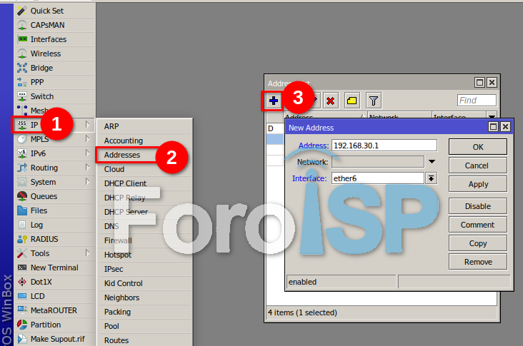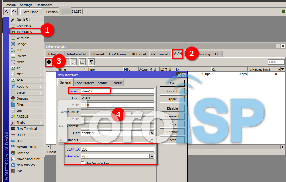 Según el diagrama presentado, usaremos el puerto eth6 y spf1 para la conexión hacia la OLT, en eth6 se usará la la red 192.168.30.0/24 como LAN de administración. y spf1 con VLAN 200 la red 192.168.200.0/24 para la LAN de clientes.