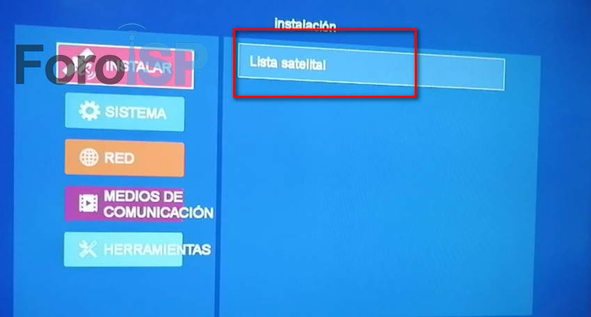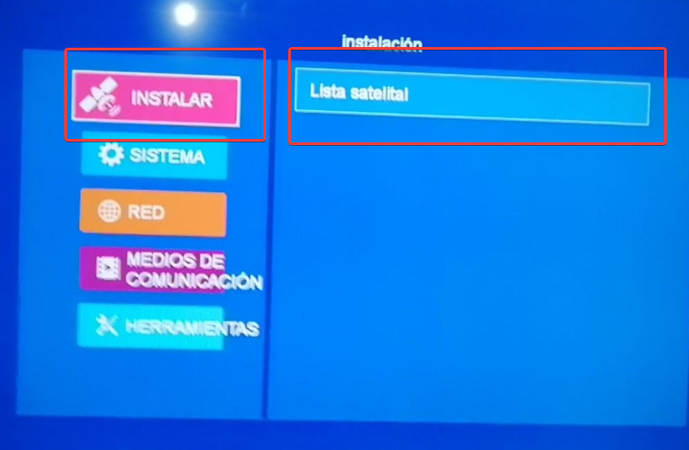 Paso .- 1 – Conectamos nuestro dispositivo GT Media v7 sx2 a nuestra TV por cable HDMI y seleccionamos ( INSTALAR ) después seleccionamos ( Lista Satelital )