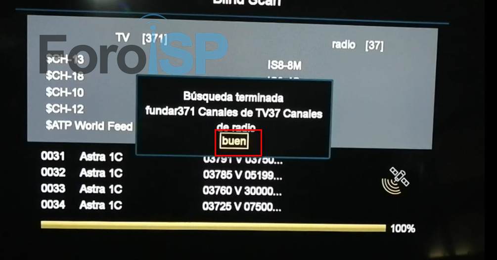 Paso 4 .- Seleccionamos en ok o en buen una vez ya terminado de escanear los canales