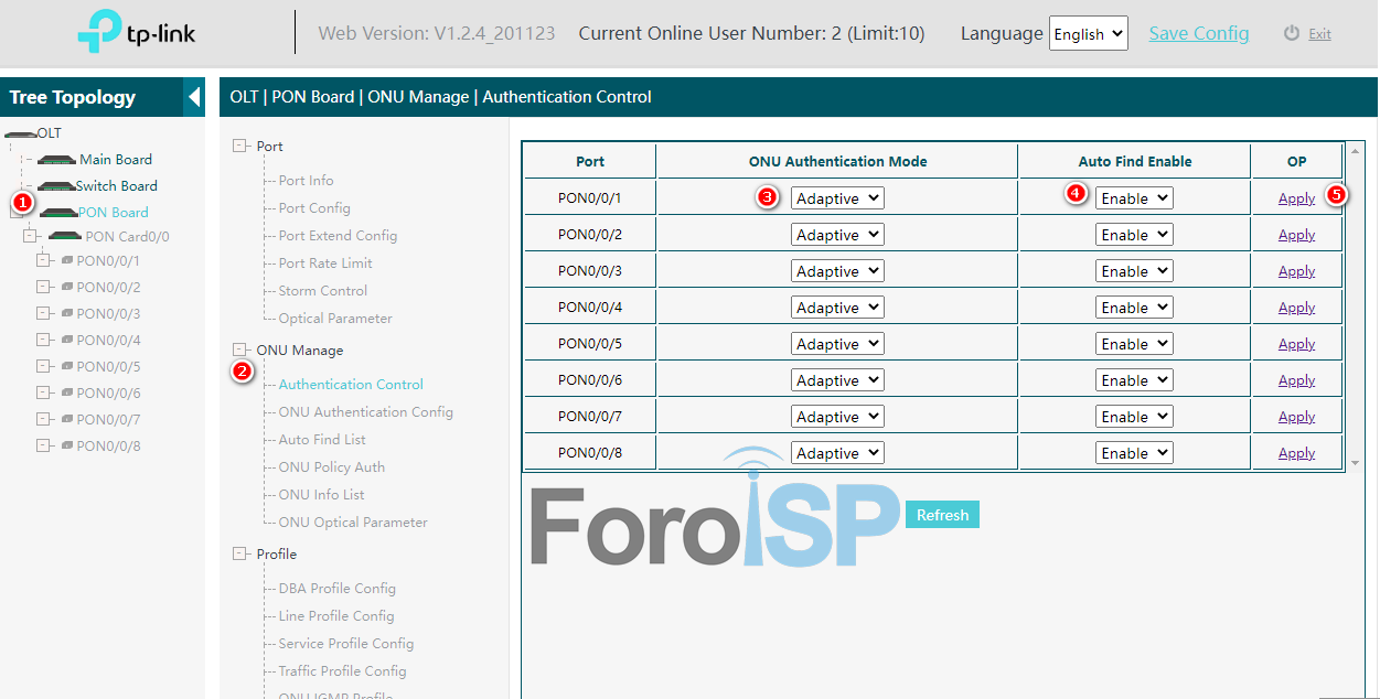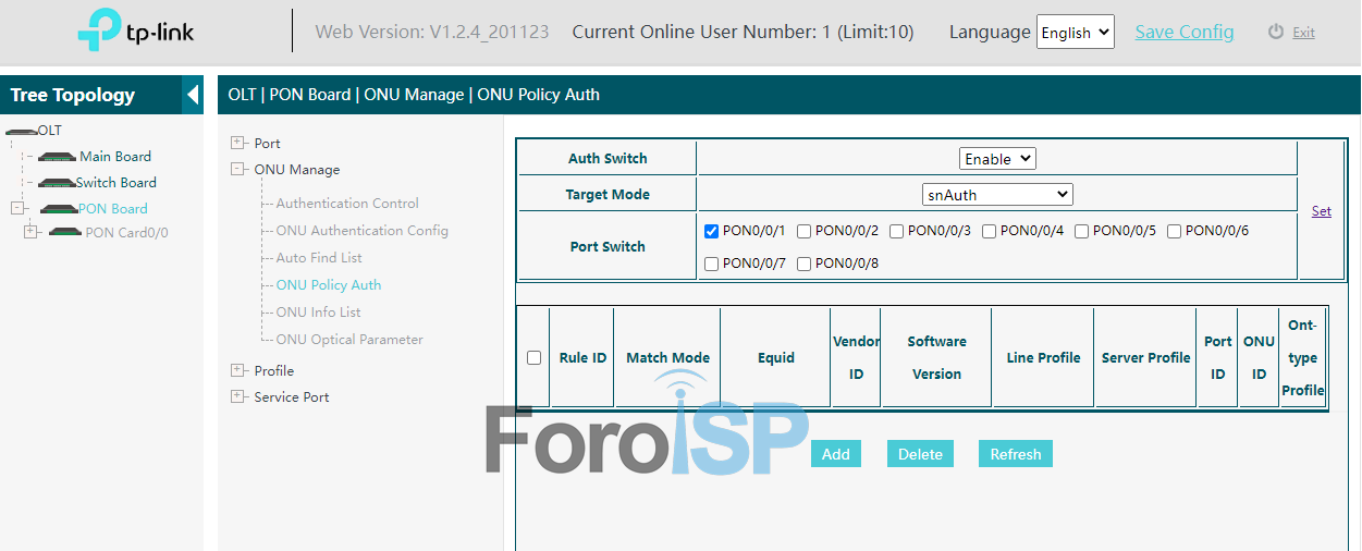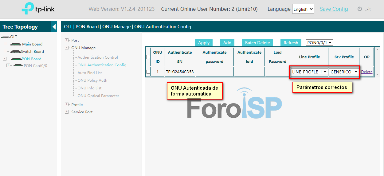 Configuracion Inicial TP-LINK utilizando metodo Auto auth de Puertos PON