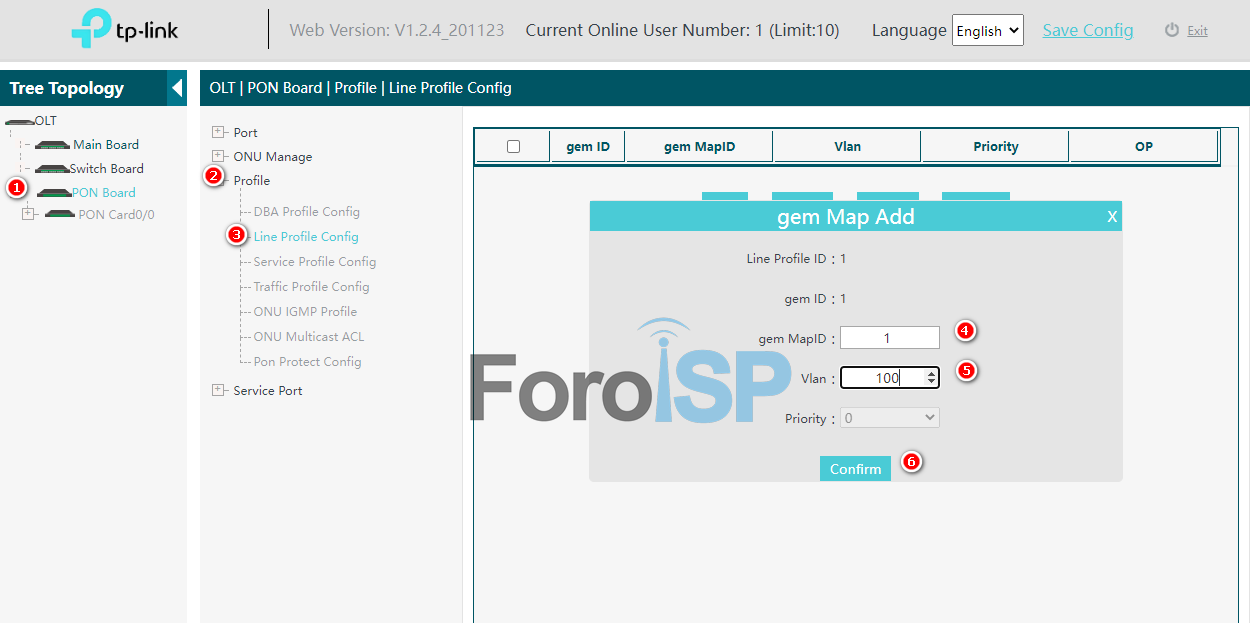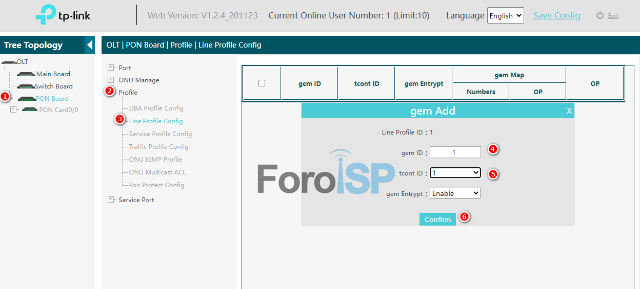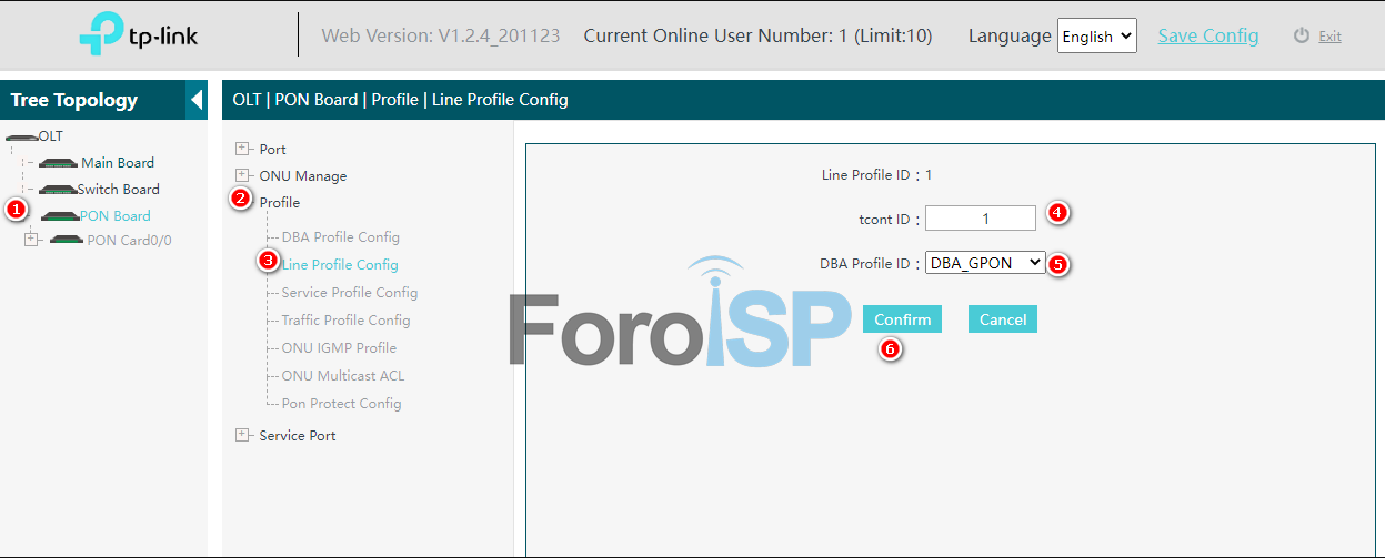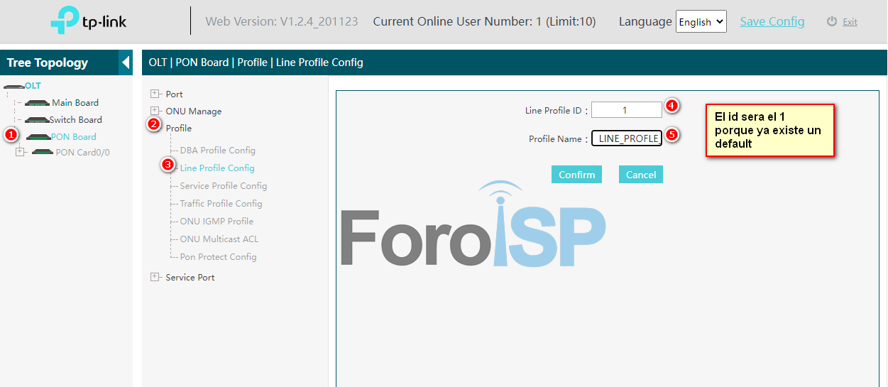 Agregar el Line Profile que asignaremos para las Onus en el apartado Line Profile Config.