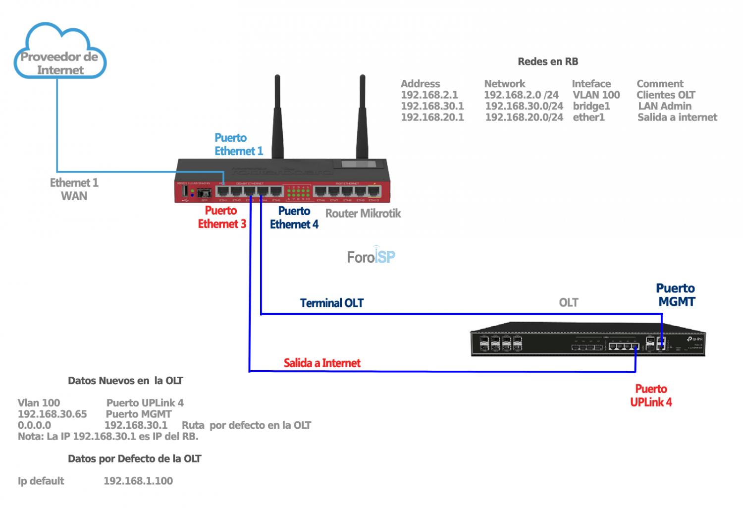 Utilizaremos la ip 192.168.30.65, esto permitirá acceder a la interfaz utilizando la Ip de administración y ya no la Ip por default. Para realizar el cambio tendremos que entrar a la interfaz de linea de comandos y cambiar la ip de la OLT, esto lo podemos hacer desde nuestro Mikrotik.