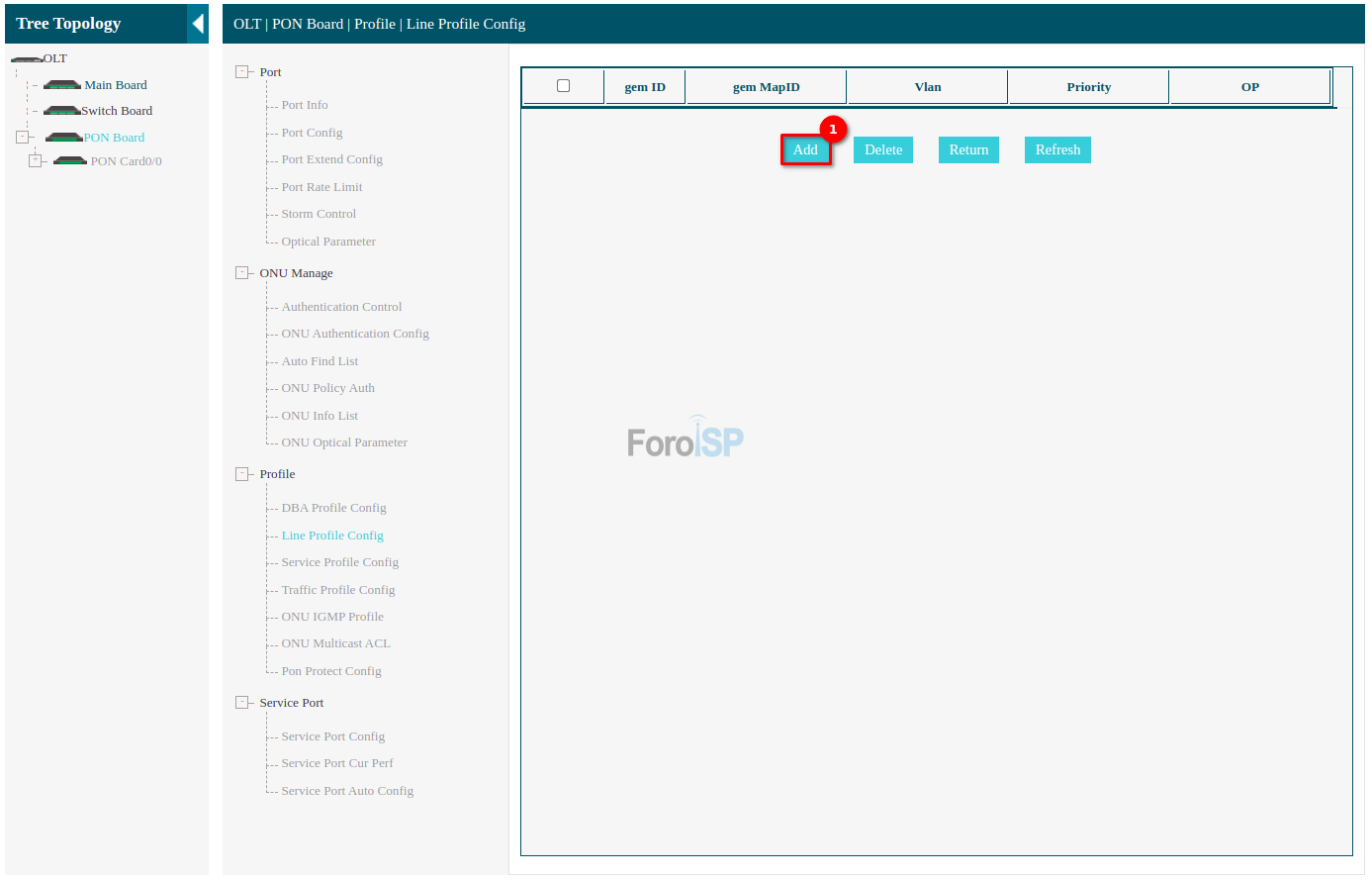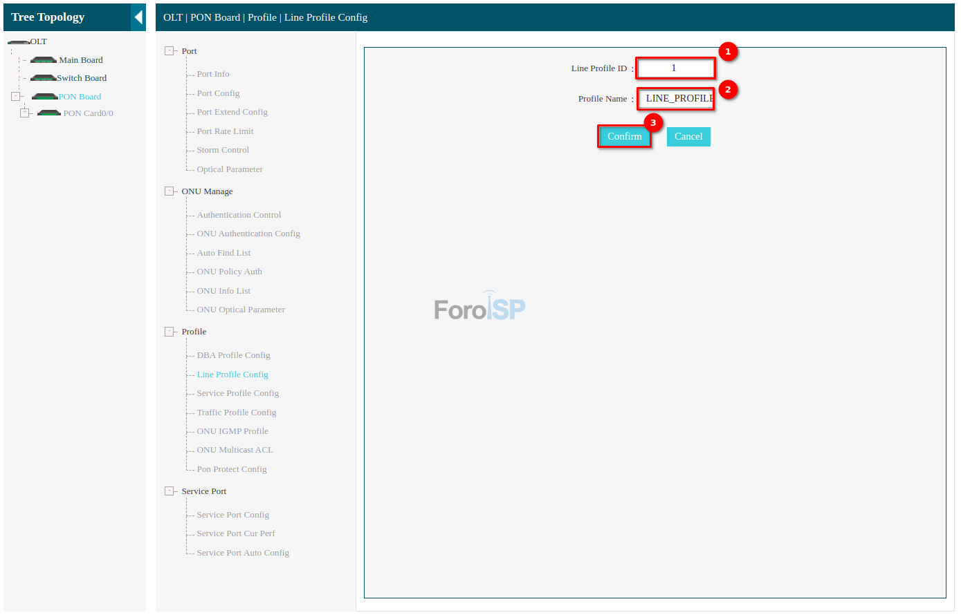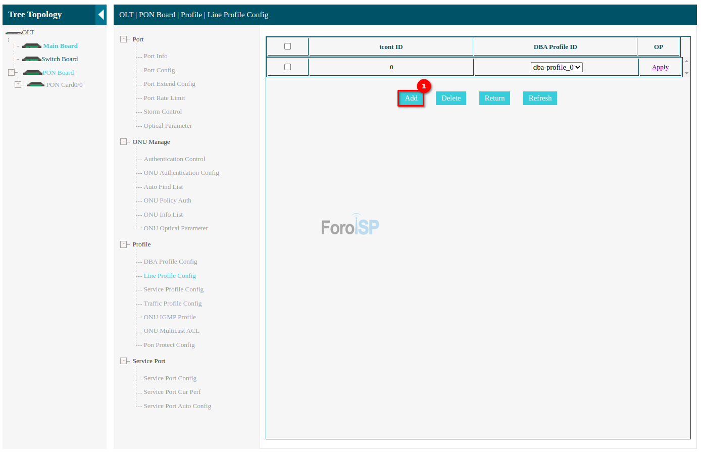 Un Line Profile es un perfil de línea que nos sirve para describir la vinculación entre un T-CONT y el DBA Profile. Si desea saber más sobre el ultimo elemento, puede consultar el siguiente enlace, Crear DBA Profile