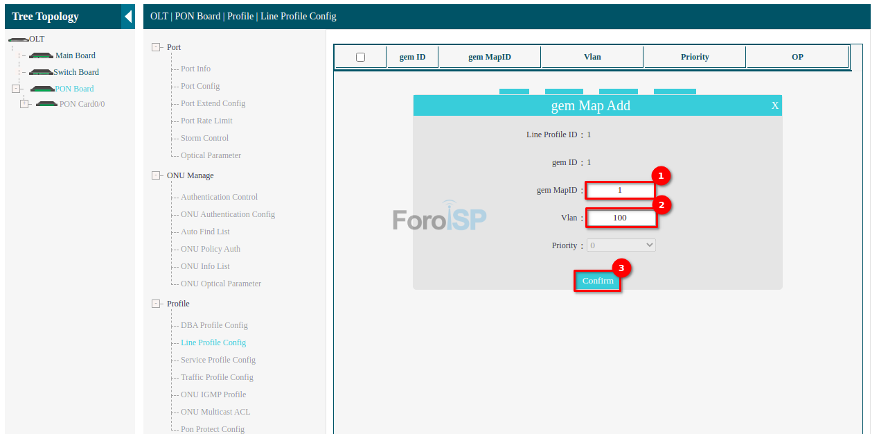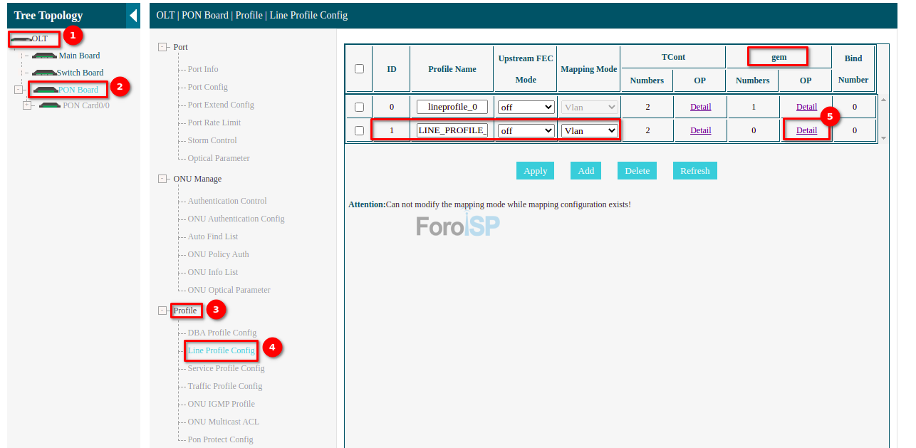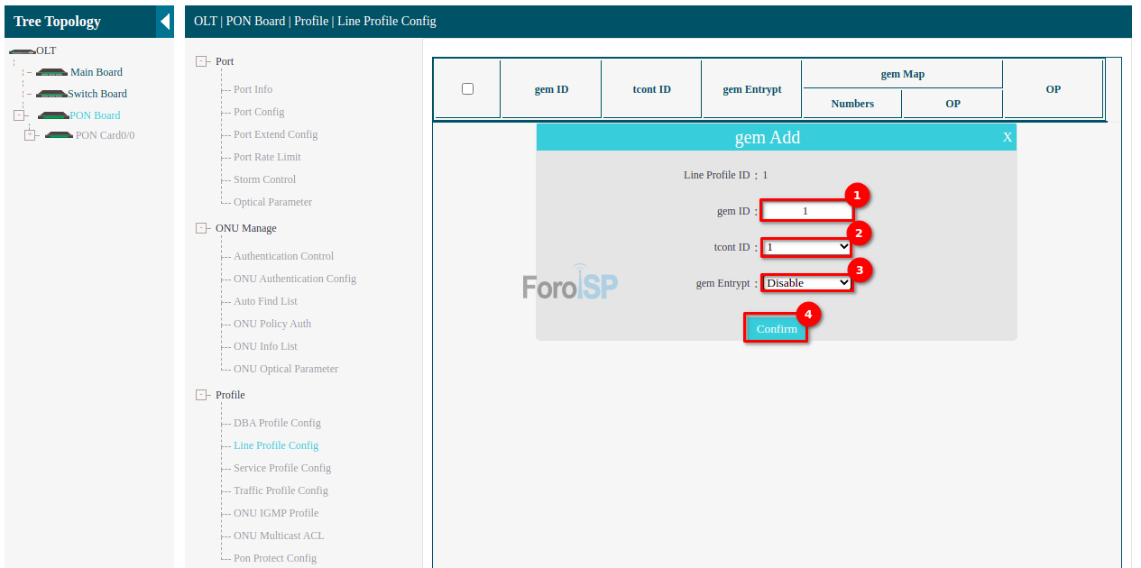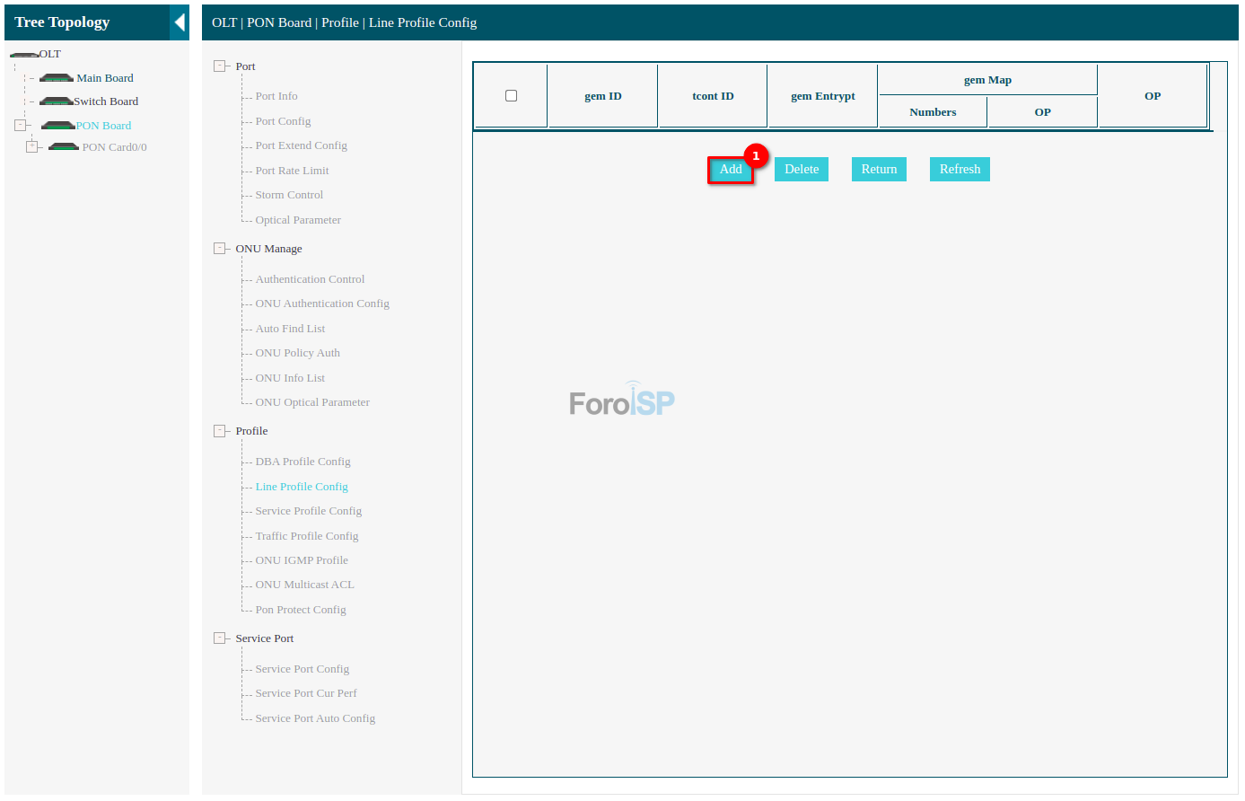 Un Line Profile es un perfil de línea que nos sirve para describir la vinculación entre un T-CONT y el DBA Profile. Si desea saber más sobre el ultimo elemento, puede consultar el siguiente enlace, Crear DBA Profile