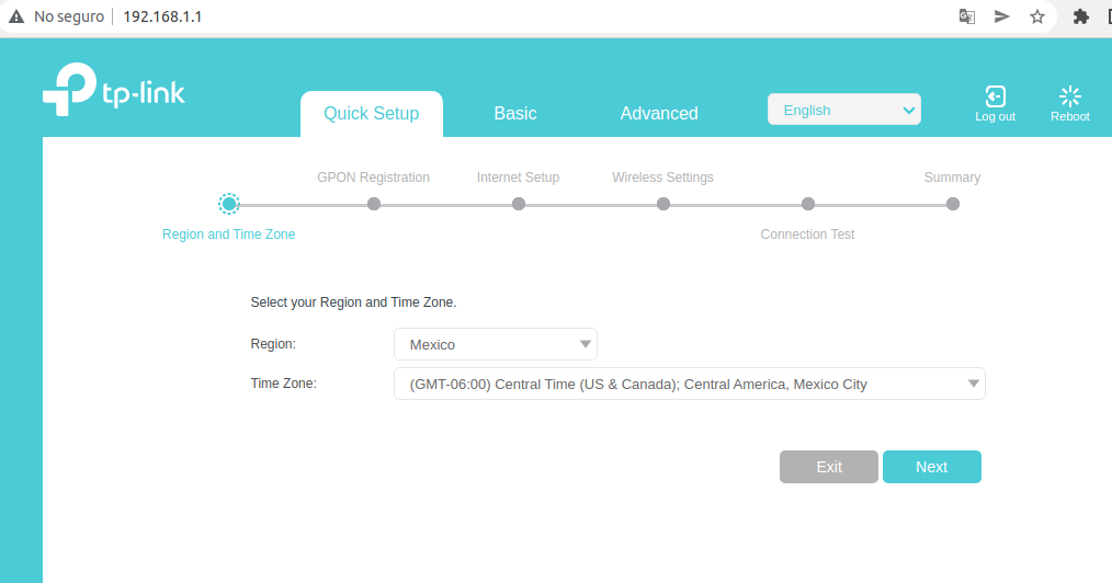 Si la información ingresada es correcta, podremos acceder a la Interfaz de la ONU y deberemos configurar la zona horaria.